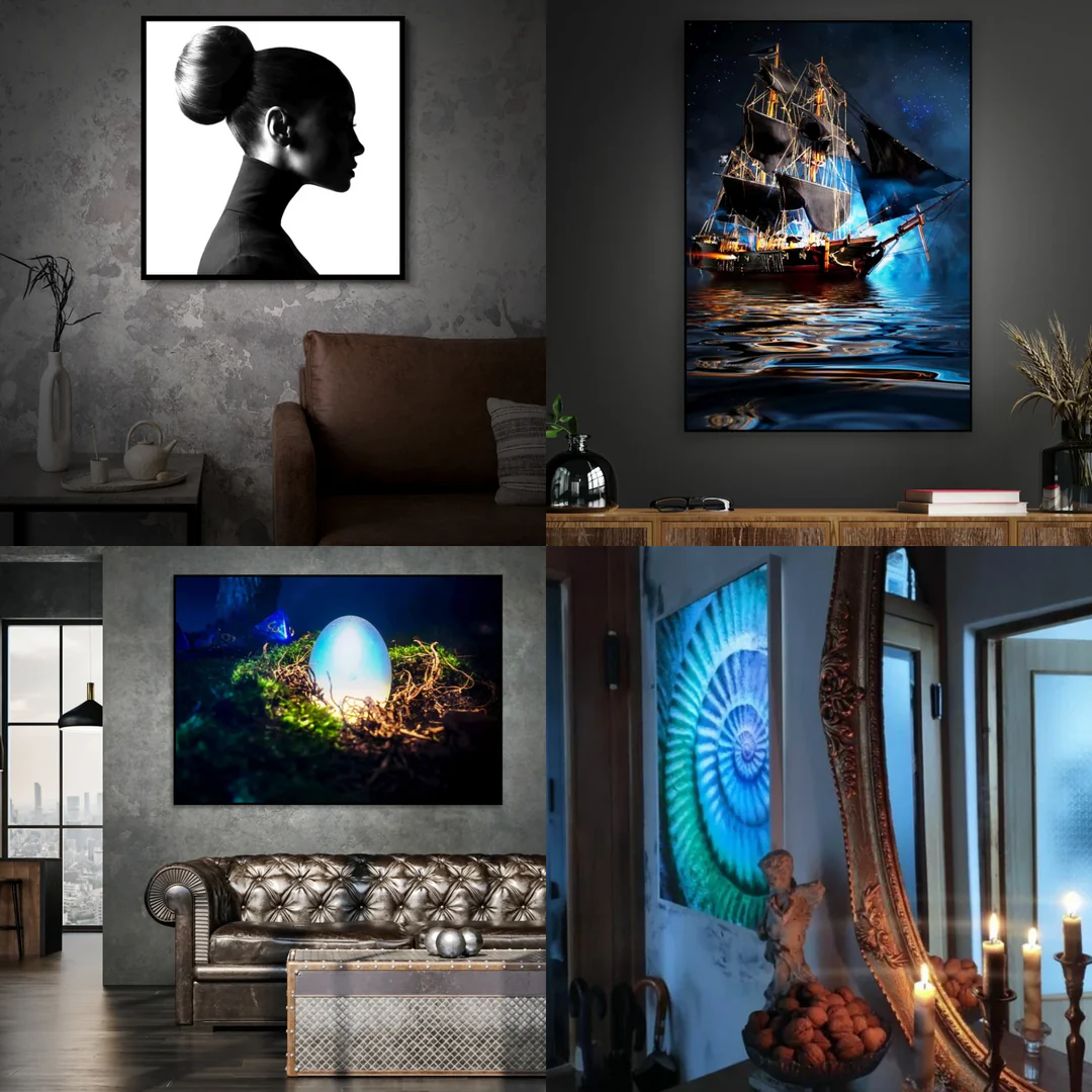 Um das Bild zum Leuchten zu bringen, schließt du es einfach an eine Steckdose an. Wenn du möchtest, kannst du es auch mit einer Batteriebox betreiben, aber das empfehlen wir nur für besondere Anlässe wie Events oder Messen.