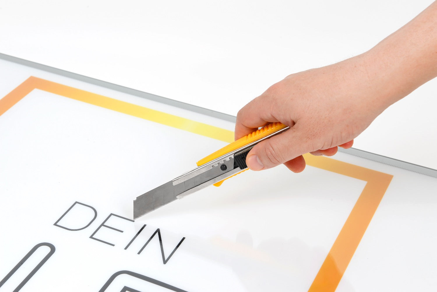 ✔️sehr einfacher Druckteilwechsel, ohne Schrauben - Poster wird einfach eingeschoben