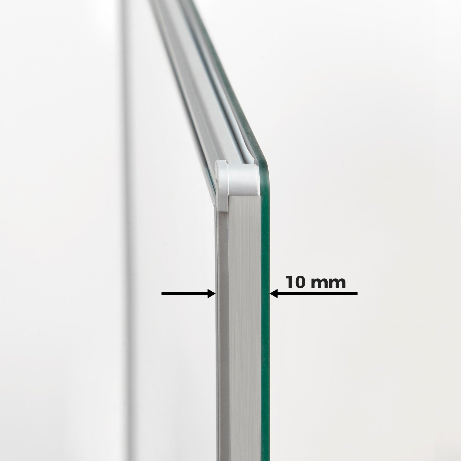 Front aus gehärtetem Glas für Kratzfestigkeit und eine kristallklare Optik. Leichter, sehr stabiler Rahmen aus beschichtetem Aluminium